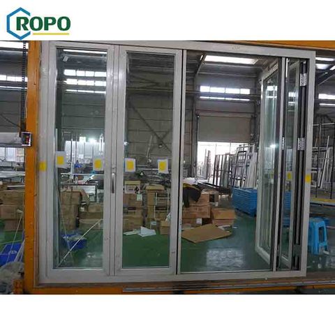 NZS4211 Soundproof Hinge Exterior Glass German System Folding Door With Double Temper Glaze