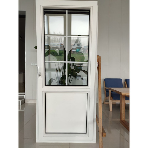 Puerta de madera revestida de aluminio con inclinación y giro de medio vidrio de diseño simple comercial frontal interior moderno